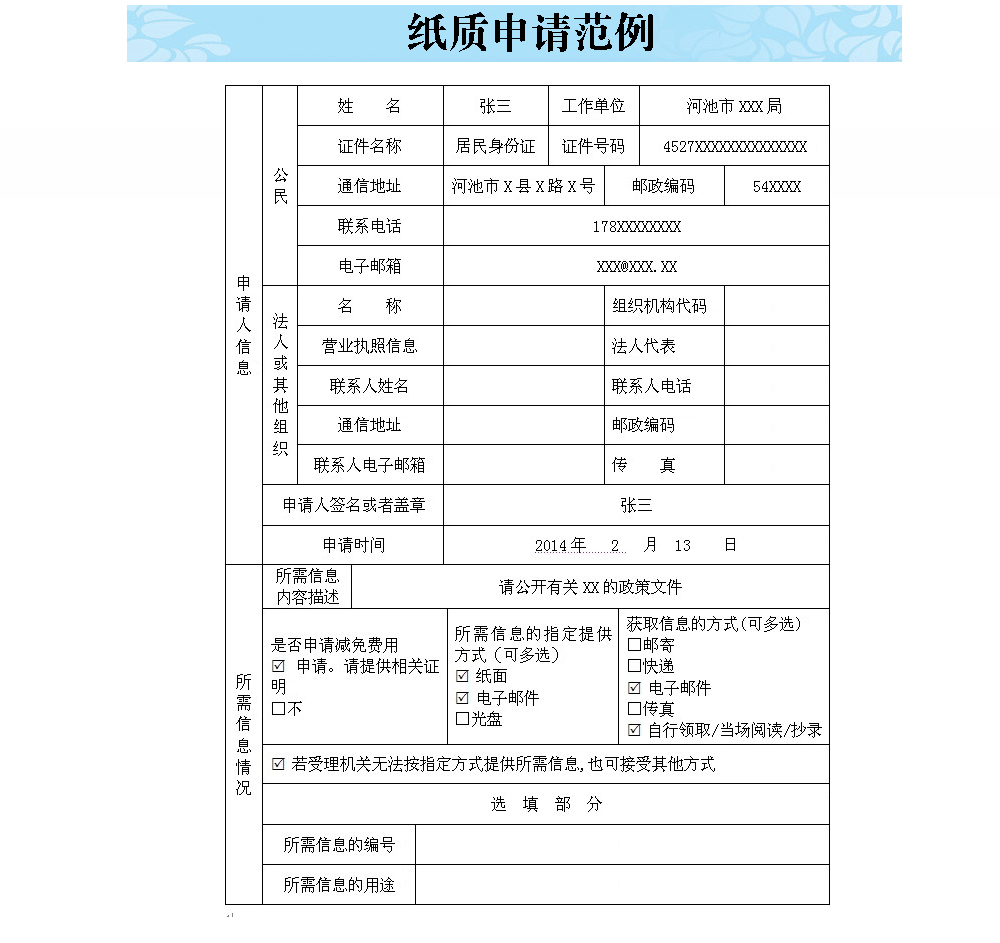 河池市政府信息公开申请填写
